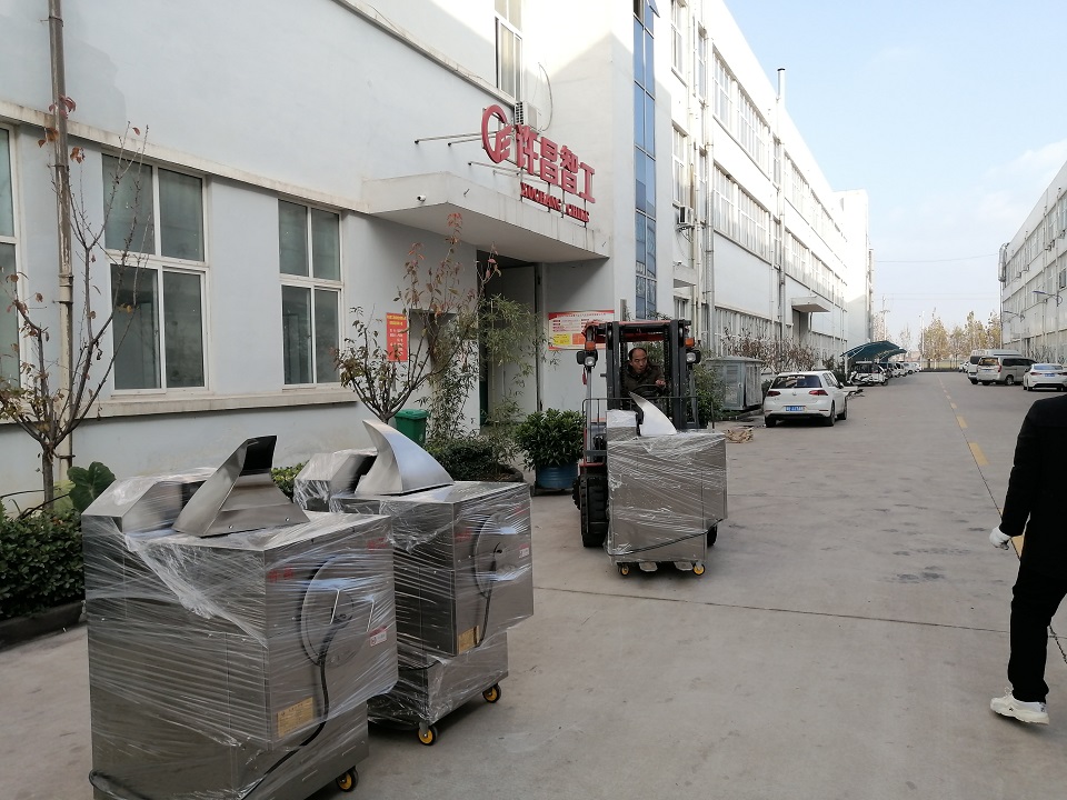 2020年11月24日,經(jīng)過幾日的雨雪,雖然今天撥云見日,但是卻掩蓋不了冬日的寒風(fēng)。湖北客戶在我廠訂購的10臺(tái)DCCZ 5-4型電磁炒貨機(jī)開始裝車發(fā)貨。許昌智工DCCZ 5-4型電磁炒貨機(jī),采用電磁加熱技術(shù)節(jié)能環(huán)保無污染、無碳排放,設(shè)備采用獨(dú)特的滾筒臥式結(jié)構(gòu),電磁感應(yīng)加熱受熱均勻,滾筒鍋體轉(zhuǎn)速可隨意調(diào)節(jié),客戶可以根據(jù)物料品種要求設(shè)置轉(zhuǎn)速;
