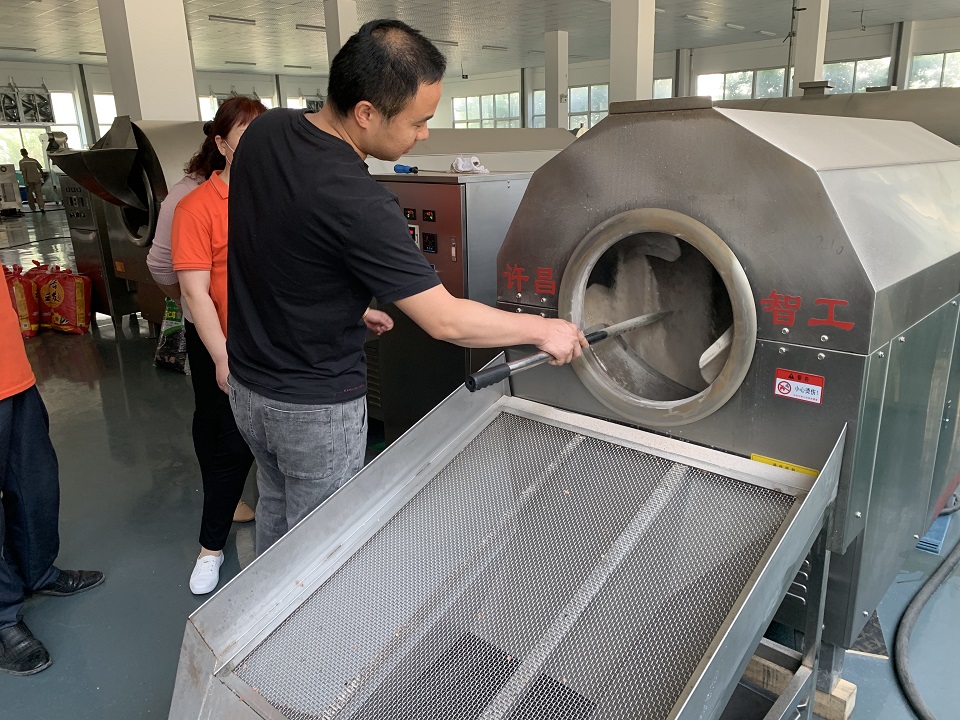 2020年5月3日,安徽亳州客戶親臨許昌智工試機DCCZ7-10電磁炒貨機炒制大豆,經(jīng)現(xiàn)場炒制,出鍋大豆飽滿圓潤色澤金黃,客戶表示出鍋的大豆完全符合生產(chǎn)需求,表達對許昌智工機械制造有限公司機器的肯定。