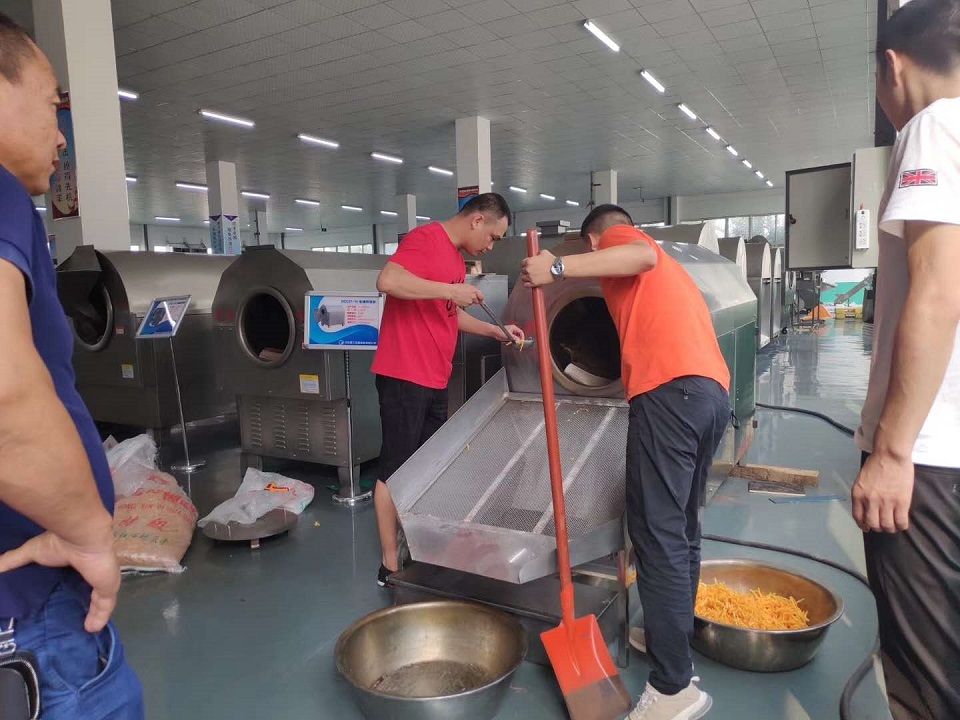 2020年07月08日,福建客戶來到許昌智工機(jī)械制造有限公司試機(jī)7-10炒制紅薯?xiàng)l,經(jīng)過炒制,紅薯?xiàng)l色澤金黃,香味四溢,口感香甜,客戶表示十分滿意。并當(dāng)場簽訂購機(jī)合同。許昌智工為您提供大中小型電磁炒貨流水線設(shè)備,搭配提升機(jī)、冷卻床等、打造整體作業(yè)生產(chǎn)線,電磁炒貨流水線設(shè)備可根據(jù)您需要炒制的物料選擇鍋內(nèi)曬網(wǎng)圓孔尺寸以及流水線長度。另外許昌智工為您提供流水線炒貨設(shè)備以及配套設(shè)備,包括提升機(jī)、冷卻床、振動(dòng)過濾風(fēng)選機(jī)等。小型電磁炒貨流水線設(shè)備適合門店生產(chǎn),方便智能、零排放。中型電磁炒貨流水線設(shè)備,適合個(gè)體戶,小型炒貨批發(fā)商,產(chǎn)量適中操作智能,低功耗。大型電磁炒貨流水線設(shè)備滿足企業(yè)生產(chǎn),產(chǎn)量高、故障自診功能,故障顯示一目了然、操作只需一人節(jié)省人力。另外許昌智工支持定制服務(wù)、為您量身定制,您所需要的炒貨設(shè)備。