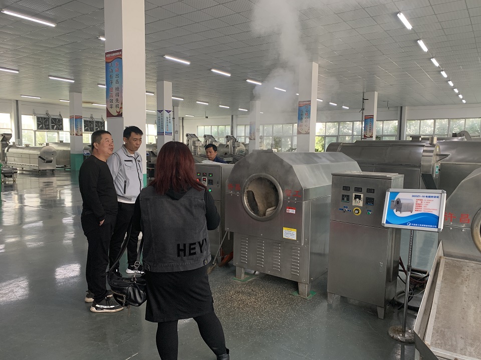 海南和浙江客戶同時(shí)光臨許昌智工考察電磁炒貨機(jī)